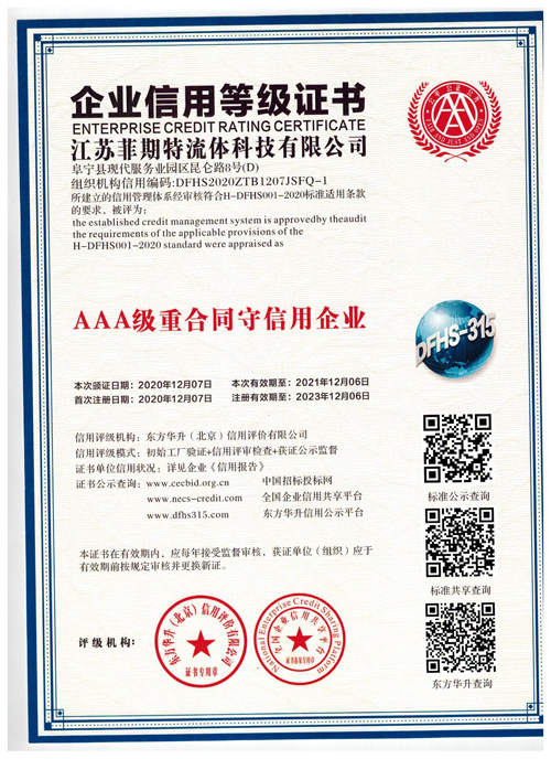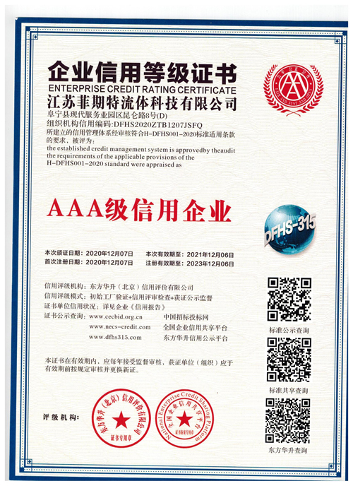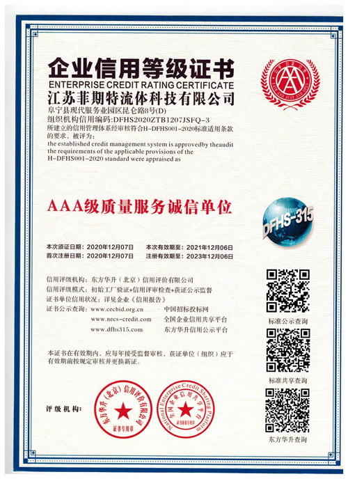 江苏菲期特流体科技有限公司承诺以优质的质量和诚挚的服务为客户服务。